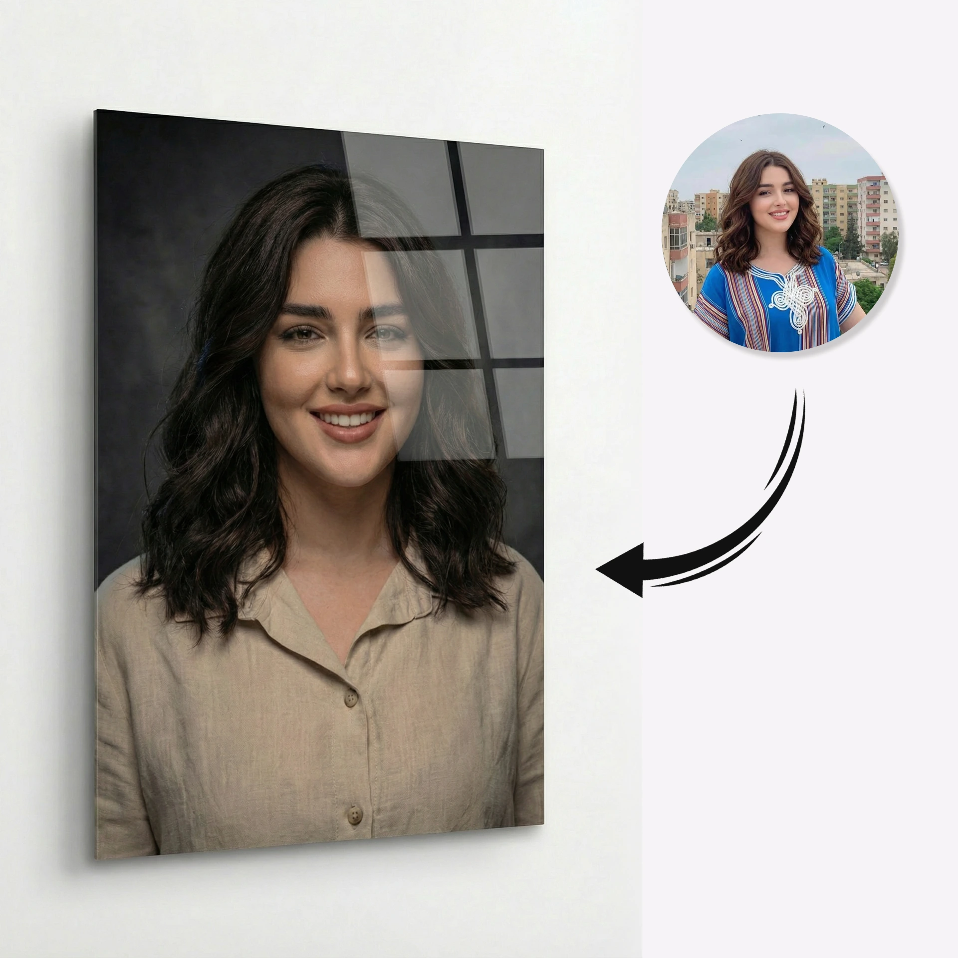 لوحات بورتريه من الزجاج الأكريليك بتصميم أنيق وطباعة احترافية.